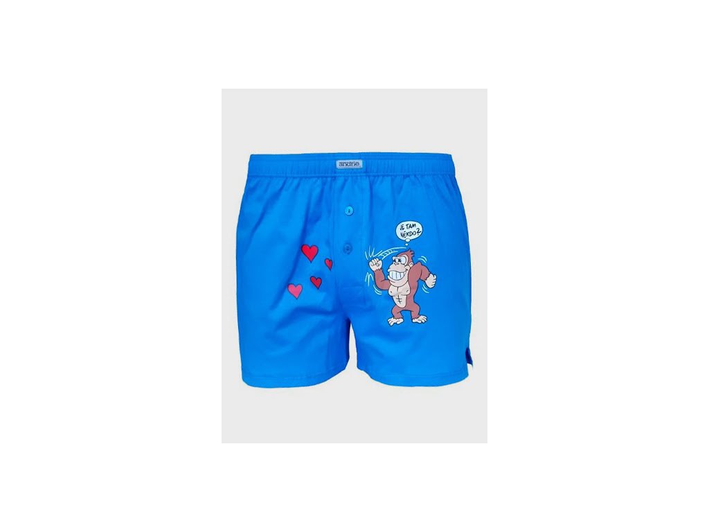 Pánske trenírky Andrie sú veľmi obľúbenou a rokmi preverenou značkou. Pánske trenírky voľnejšieho strihu s rozparkami na bokoch majú obrázok s opicou alebo mačkou na ľavej nohavičke.V páse je zašitá guma, na prednej časti je logo výrobcu. Rázporok s rozopínaním na dva gombíky. Trenírky majú veľmi príjemný, mäkký materiál a rokmi vyskúšaný strih. Vzorované trenírky Andrie sú pohodlné na denné nosenie a tiež na spanie.